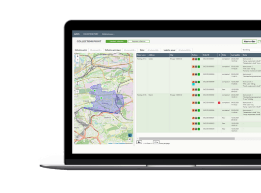 Laptop displaying a map-based interface for managing collection points.