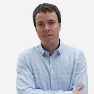 Calm professional in a light blue shirt with a composed expression.