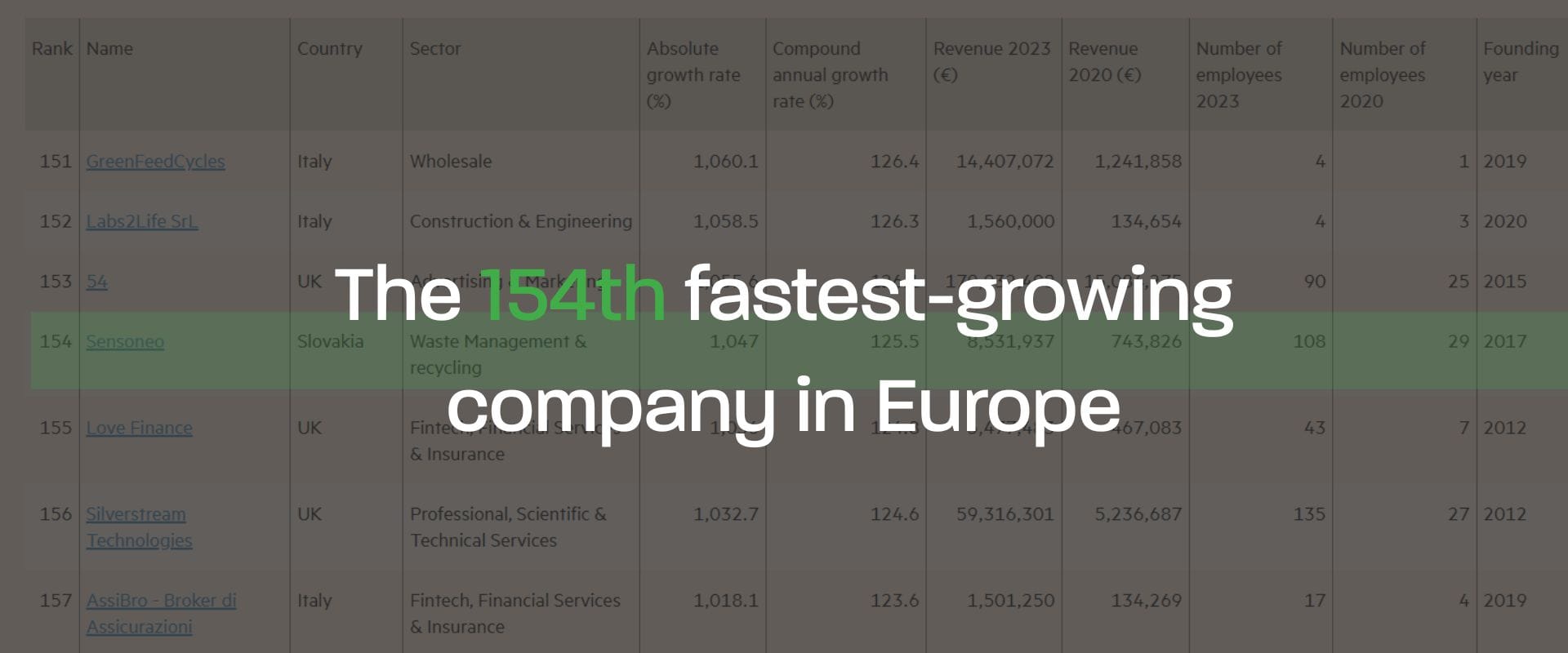Sensoneo scored in the prestigious ranking: #154 among the 1,000 fastest growing companies in Europe