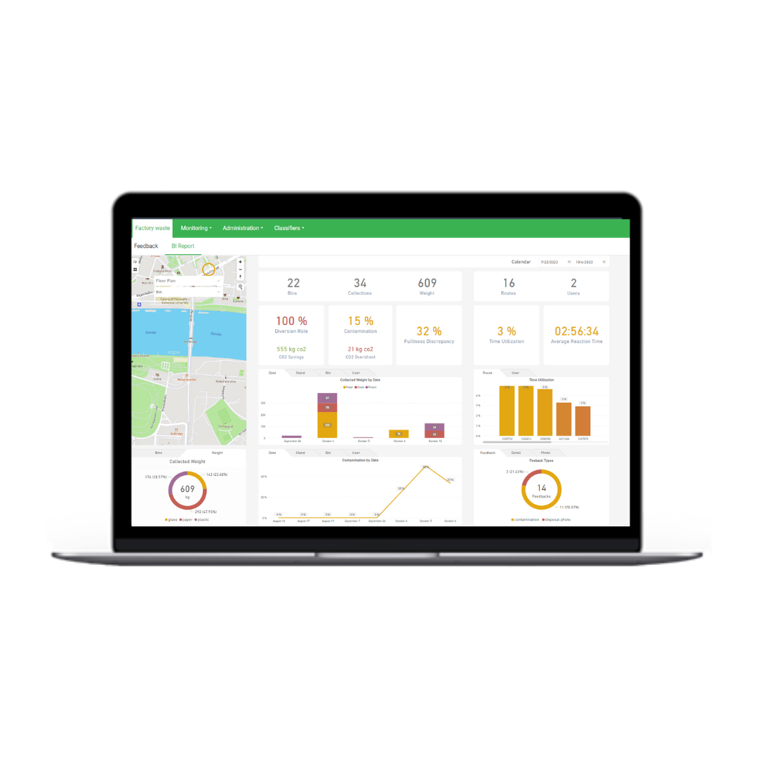 By combining a compact hardware setup with automated reporting, it transforms everyday waste collection into actionable data that supports sustainability goals and ESG compliance.