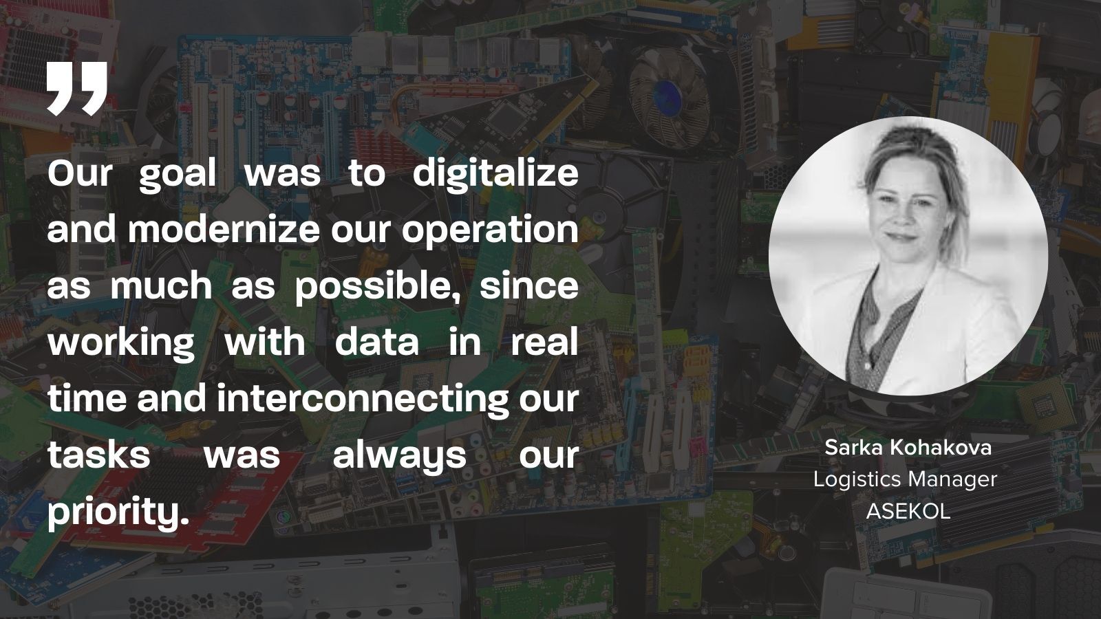Our goal was to digitalize our data and all processes to the maximum extent possible, since working with data in real-time and interconnecting our processes are our key operations. The correctness of the data is an absolute priority for us. The ISA tool, which is our internal name for the solution, works with data in real time online and is not only step forward for Asekol, but also helps us to be as efficient as possible in what we do.