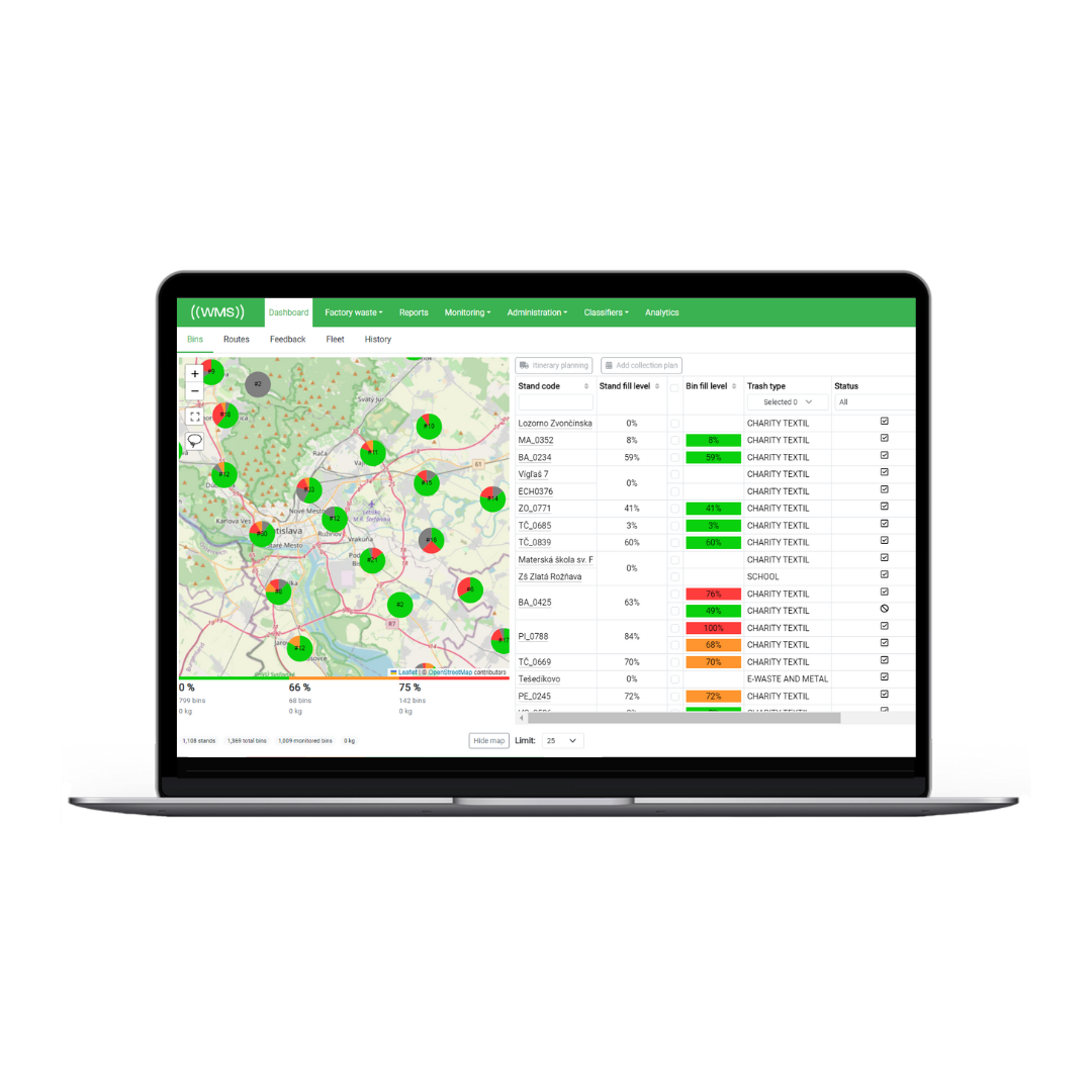 The powerful cloud-based waste management software system enables the customer to configure, monitor and manage daily operations of a waste management company. In addition to live data from waste fill-level monitoring, the tool can also hold complex bin database, plan the optimal collection routes, predict filling cycles, and manage reports from employees and citizens. The solution is hosted in the Microsoft Azure cloud and belongs to one of the most advanced waste management softwares on the market.