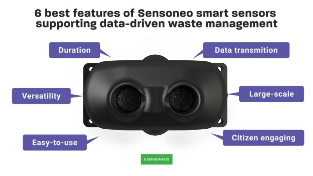 Ultrasonic Sensors measure distance to the waste surface using sound waves, making them suitable for all types of waste bins. They are cost-effective, versatile, and can handle a variety of waste types and bin designs. One of the top features of Sensoneo sensors is their duration, as they are completely shock-, temperature-, and water-resistant.