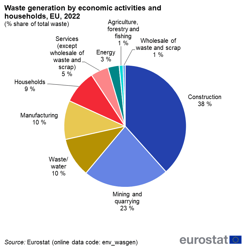 When we think of waste, we often picture household trash, and while it is a significant issue, it represents only a fraction of the problem. Every year, approximately 2 billion tons of municipal waste are generated globally, with the U.S. and EU among the highest per capita contributors. Managing this waste remains a major challenge for cities worldwide. However, municipal waste is just the tip of the iceberg. In the EU, industries and mining generate nine times more waste than households, and manufacturing alone produces more waste than all households combined. Addressing industrial waste is crucial for achieving a truly sustainable waste management system.