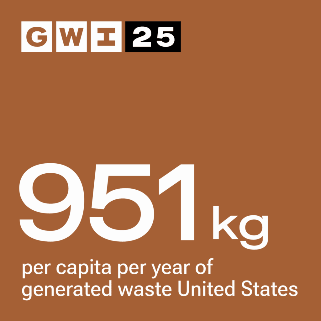 According to Global Waste Index 2025, average waste generation in the U.S. reached 951 kilograms per person annually, or about 2.6 kilograms per day. Most of this waste comes from households – packaging, food scraps, yard trimmings, as well as commercial and institutional sources. These figures underline the urgent need for more sustainable waste management practices.