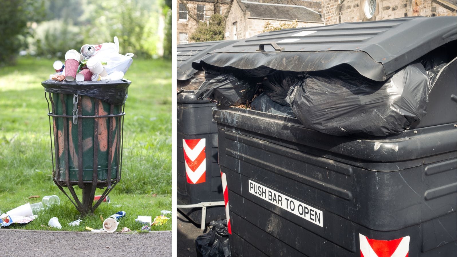 - Overflowing bins