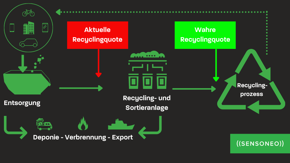 Umweltverbände wie der Bund für Umwelt und Naturschutz Deutschland gehen davon aus, dass weniger als 16 Prozent der in Deutschland zum Recycling vorgesehenen Wertstoffabfälle zur Wiederverwendung aufbereitet werden können. Die größten Probleme verursacht insbesondere der Materialmix vieler Abfälle. Immer mehr Produkte bestehen nicht nur aus einem Material, sondern kombinieren verschiedene Wertstoffgruppen. Ein modernes Beispiel hierfür ist der Joghurtbecher mit Pappmantel und Aluminium-Deckel. Wenn der Becher nicht bereits sauber getrennt im gelben Sack und in der Papiertonne landet, ist die Wahrscheinlichkeit groß, dass er zwar in der Recyclinganlage registriert wird, aber am Ende doch noch verbrannt wird. Insbesondere kleine, sehr dünne Materialien und Lebensmittelverpackungen sind schwer zu recyceln, da ihre Aufbereitung sehr ausgefeilte Technologien erfordert, die eher in Ausnahmefällen verfügbar sind. Weitere Gründe sind die spätere Verwendbarkeit auf dem Markt und der Preis, der den anspruchsvollen Recyclingprozess widerspiegelt.