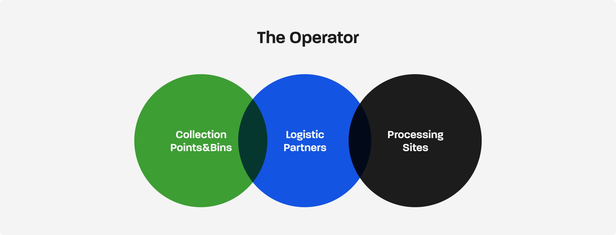 Le responsable ou le gestionnaire de stock reçoit rapidement les déchargements et les enregistre dans l’application mobile, puis saisit les données pour les rapports ultérieurs. Le responsable a une vue d’ensemble de tous les déchets livrés et assignés. Pour les déchets non traités, il demande un transport en soumettant des demandes de collecte sur le marché pour les partenaires logistiques, tout comme les points de collecte. L’opérateur de reprise n’a pas besoin d’interférer dans le processus.