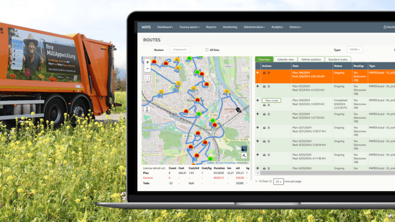 Another inspiring way how to leverage this data is through route planning, which is based on precise fill-level data from the sensors. This solution, which can optionally include a specialized Driver Navigation App, automates the management of waste collection routes based on precise, predefined data regarding waste collection vehicles, depots, and landfills or incineration sites. The goal is to ensure that every waste collection route is planned to maximize the utilization of your resources (fleet, personnel, and time) while minimizing the costs associated with the task. More efficient routes contribute to reducing the negative impacts of waste collection in Rosenheim like less noise pollution, lower air pollution, and reduced traffic congestion.