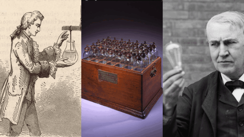 - 1749, Battery – first used to describe an electrical energy storage device by Benjamin Franklin.