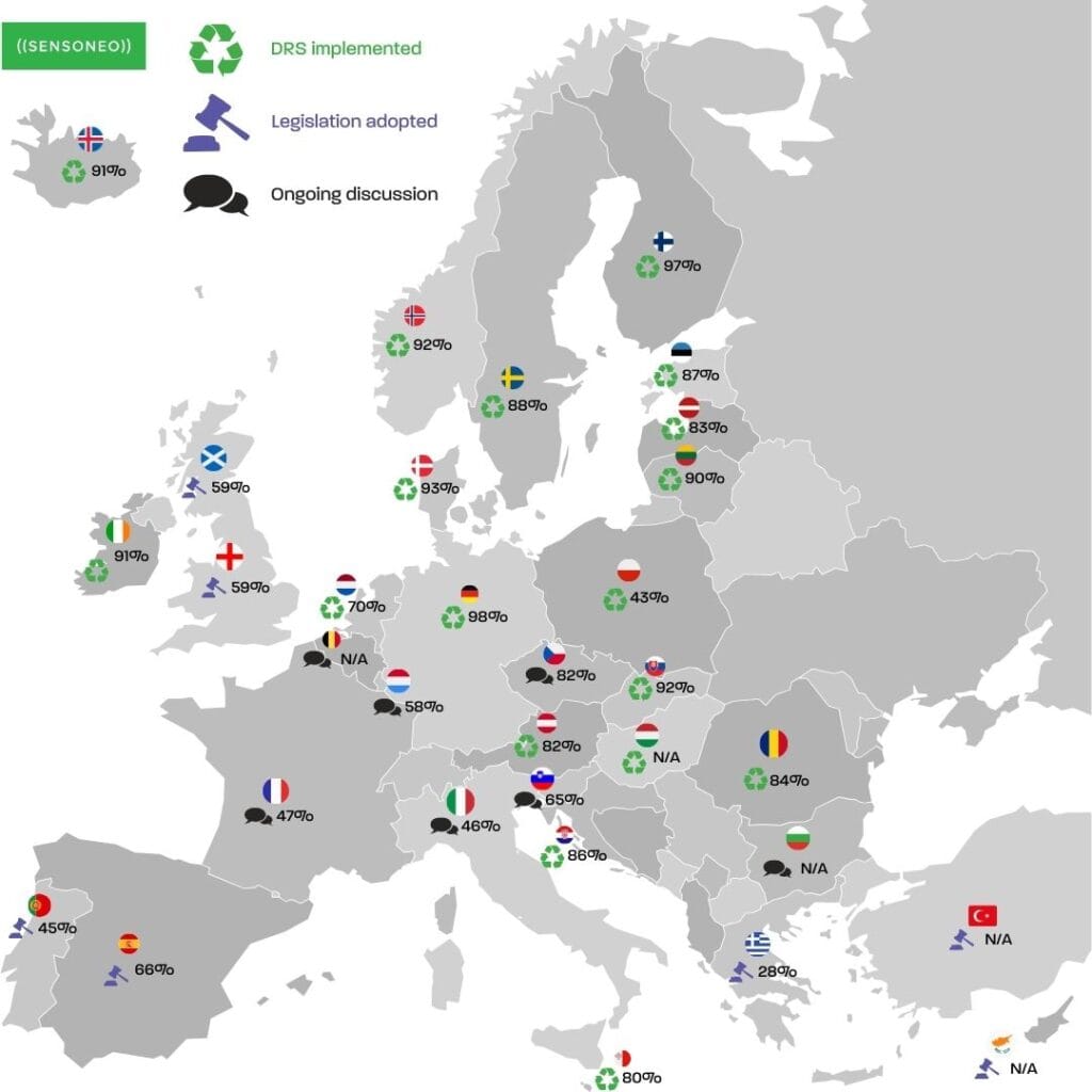 Between 7,000 and 10,000 return points are planned across supermarkets, recycling stations and HoReCa venues. Sensoneo provides the IT backbone of the system, managing data flow, logistics and take-back operations across all stakeholders. The deposit value and labelling requirements are still to be confirmed.